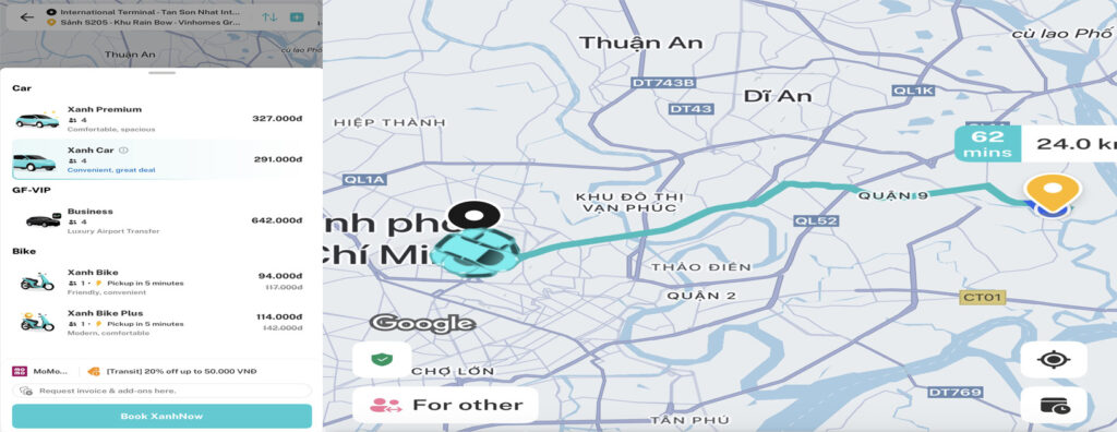 - Bạn có thể đặt taxi thông qua ứng dụng bên dưới.